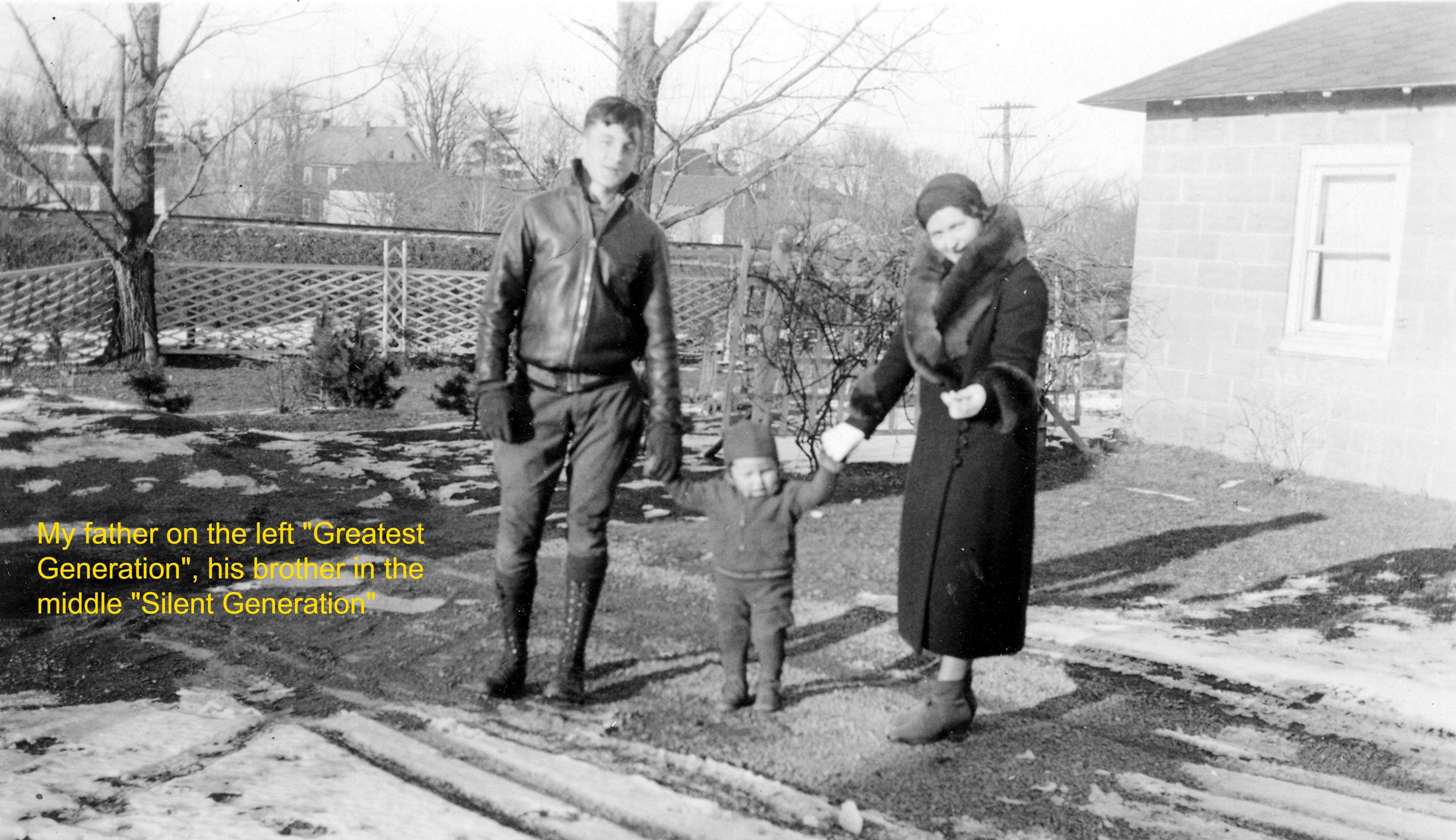 My father’s brother was born 14 years after him. At my father’s memorial, he remembered his kind caring big brother. I’m afraid his wife and daughters snorted. My mother told me that the man who came home from the war was unrecognizable. It was after the war that his group was clearly a generation, marked in their formative years. Dad tried to establish a relationship with his brother, the teenager. But in the end, there was no relationship. The rejection caused great pain to Dad, but his brother just had other things to do, a different world to live in.